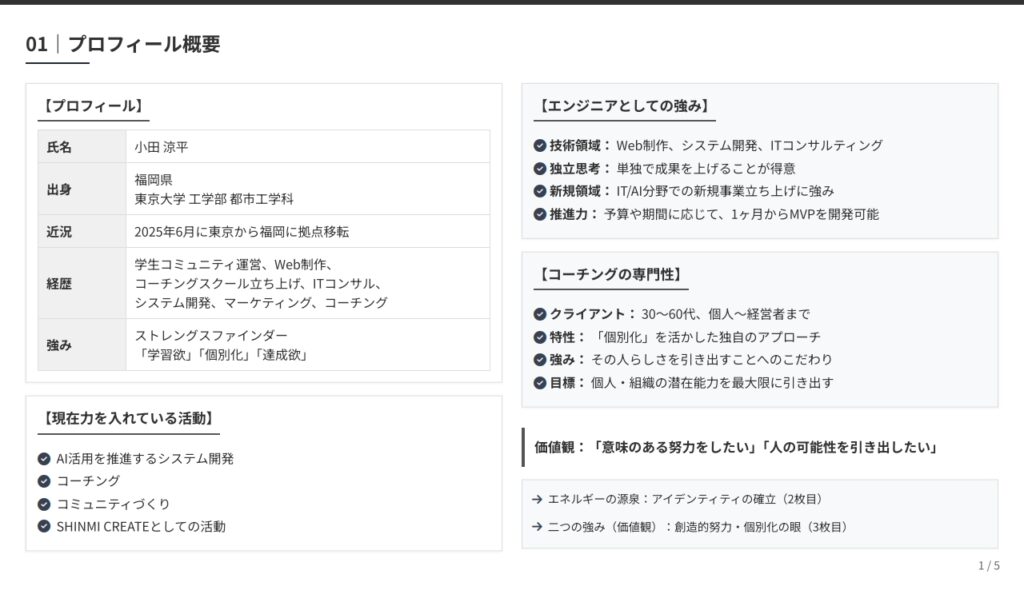 【スポット支援】フロントエンド戦略「1分で伝わる私」個人ページ作成